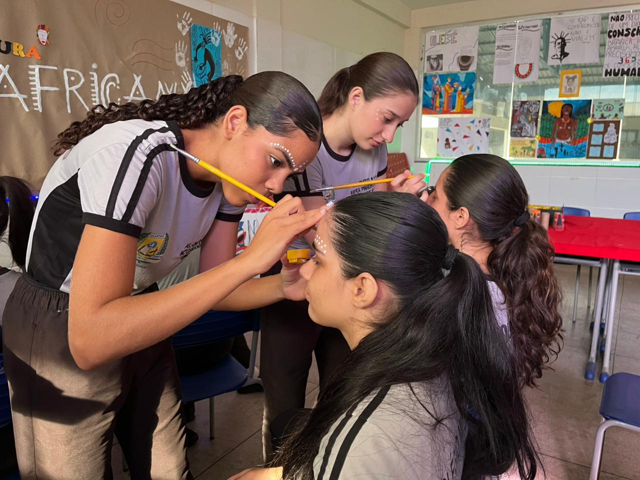 De acordo com o professor de artes, Renato Barrete, todo o trabalho desta semana é a culminância do que vem sendo realizado ao longo do ano letivo. “É um tema que perpassa o meu currículo, o meu planejamento, então a gente começou fazendo essas ações em sala de aula. Fizemos um levantamento com os estudantes da segunda série sobre as personalidades negras que eram importantes para eles, que acabou resultando na construção de painéis. Temos também uma oficina de bonecas Abayomi e máscaras africanas, além da exposição de um ensaio fotográfico sobre ancestralidade”.